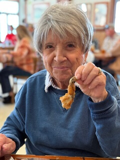 Here is a recent picture of me doing something “new.” Larry and I attended the “Frog Leg Festival” in a little town in Florida, and Larry challenged me to do something new: eat a frog leg. It looked kind of creepy, but I did it. Yes, I did something new. Yes, it tasted like chicken.